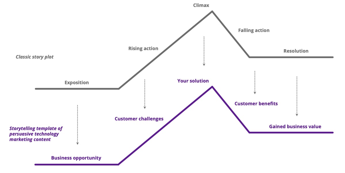 And what about then for our content marketing? Well this diagram shows one approach we can take. Overlaying the classic stages of a cinematic story onto our brand.